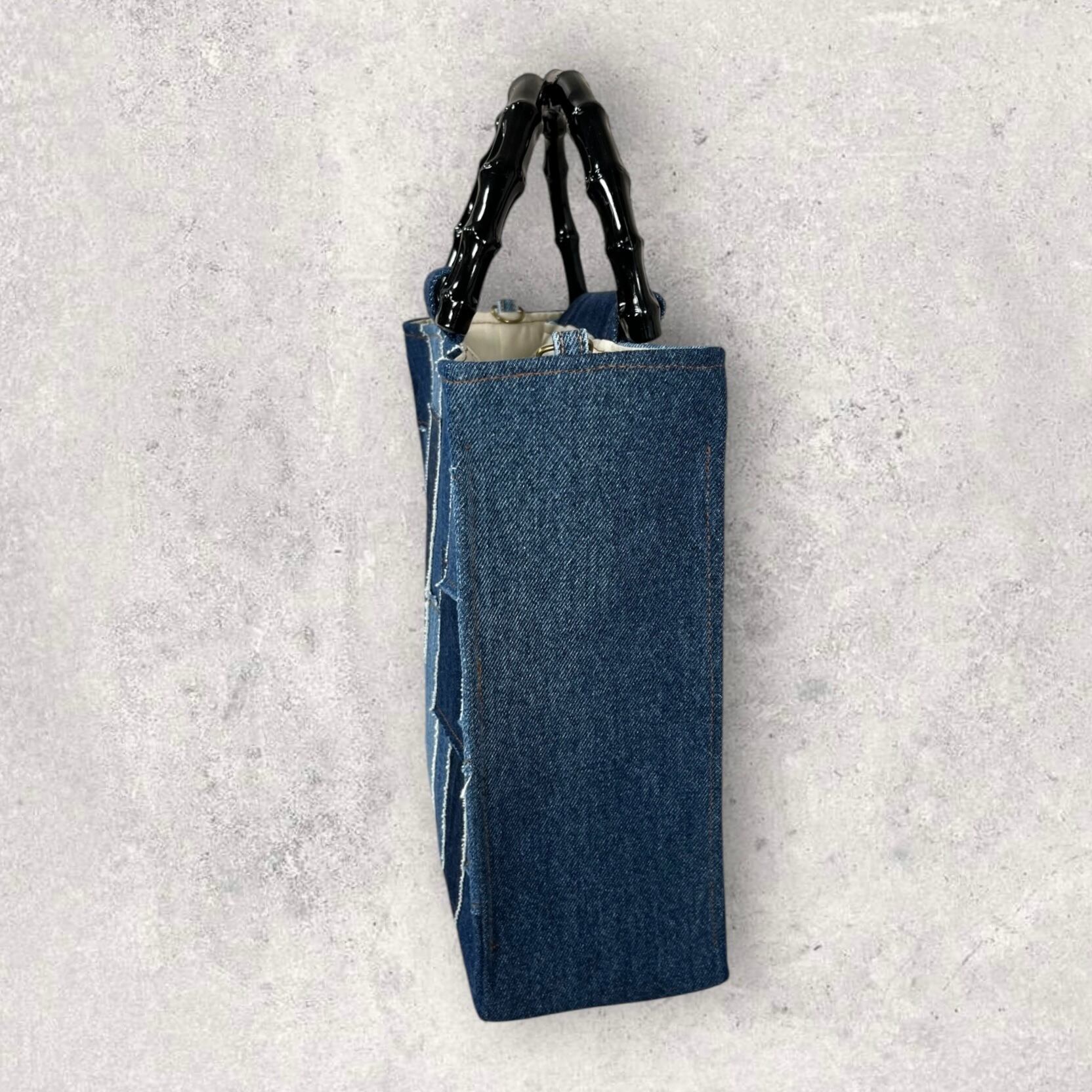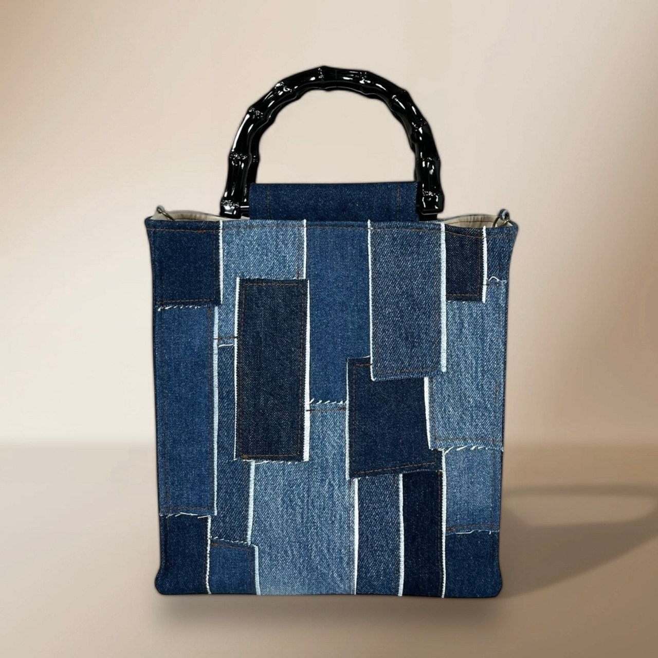 トートバッグ、かばん、オールシーズン、かわいい、デニム、大人っぽい、おしゃれ、フリンジ、リメイク、オリジナル、1点物、USED、パッチワーク、プレゼント、新生活、旅行バッグ、デニムトート、デニムトートバッグ、テッシュ、サブバッグ、ミニバッグ、パッチワーク、デニムパッチワーク、デニムパッチワークトート、プレゼント、ギフト、ショルダーバッグ