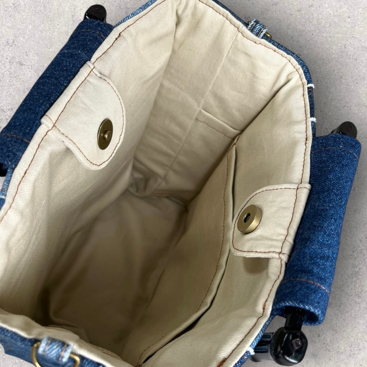 ●内布にはマグネットボタン付きで荷物こぼれの心配なし!