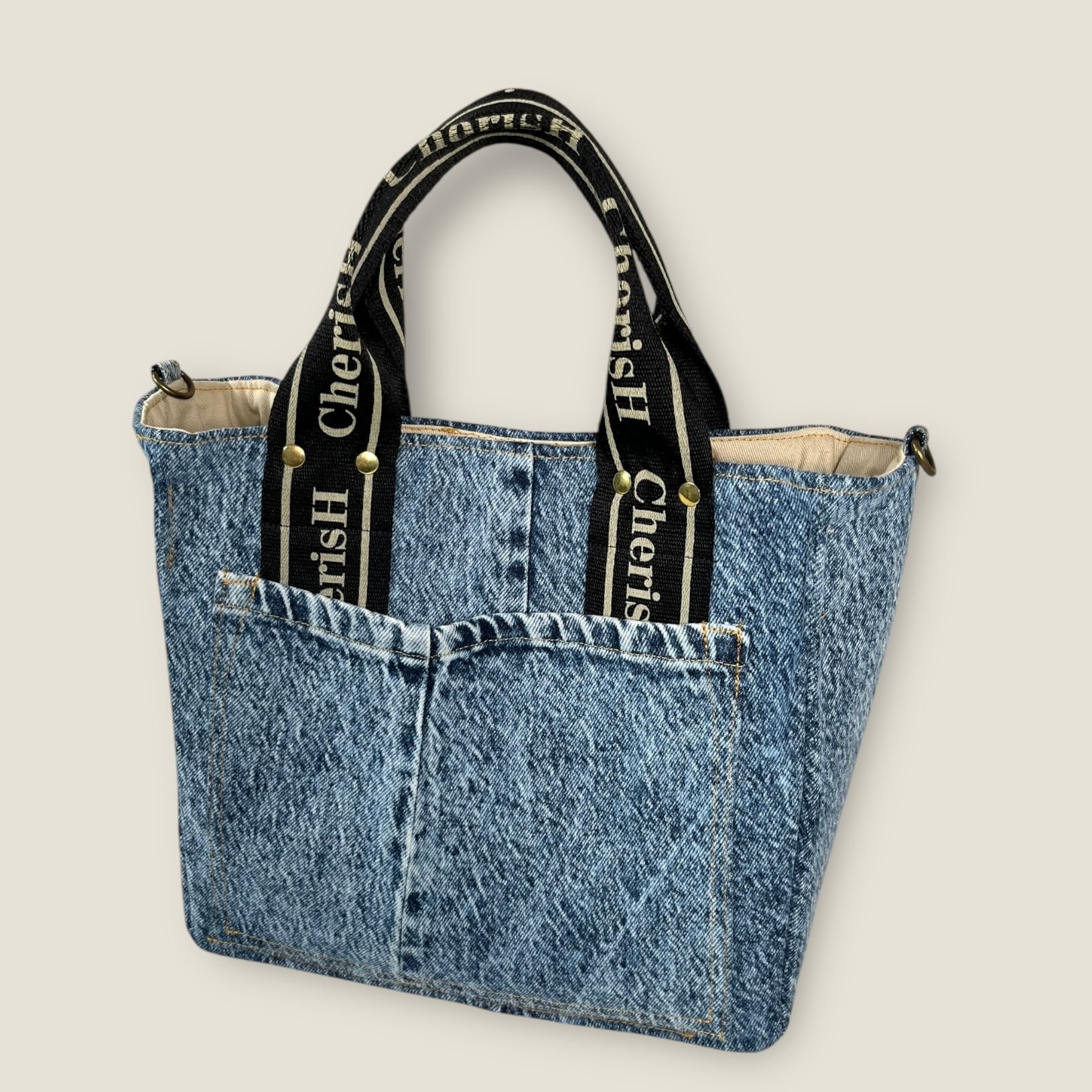 トートバッグ、かばん、オールシーズン、かわいい、デニム、大人っぽい、おしゃれ、フリンジ、リメイク、オリジナル、1点物、USED、パッチワーク、プレゼント、新生活、旅行バッグ、デニムトート、デニムトートバッグ、テッシュ、サブバッグ、ミニバッグ、パッチワーク、デニムパッチワーク、デニムパッチワークトート、プレゼント、ギフト、ショルダーバッグ