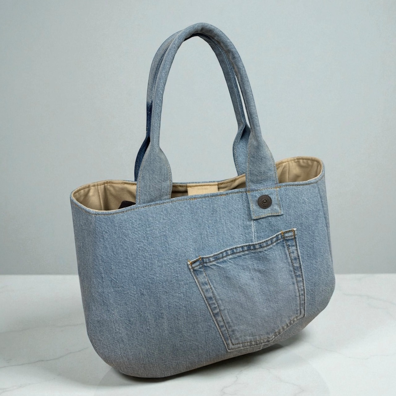 トートバッグ、かばん、オールシーズン、かわいい、デニム、大人っぽい、おしゃれ、リメイク、オリジナル、1点物、プレゼント、新生活、旅行バッグ、デニムトート、デニムトートバッグ、サブバッグ、ミニバッグ、ギフト