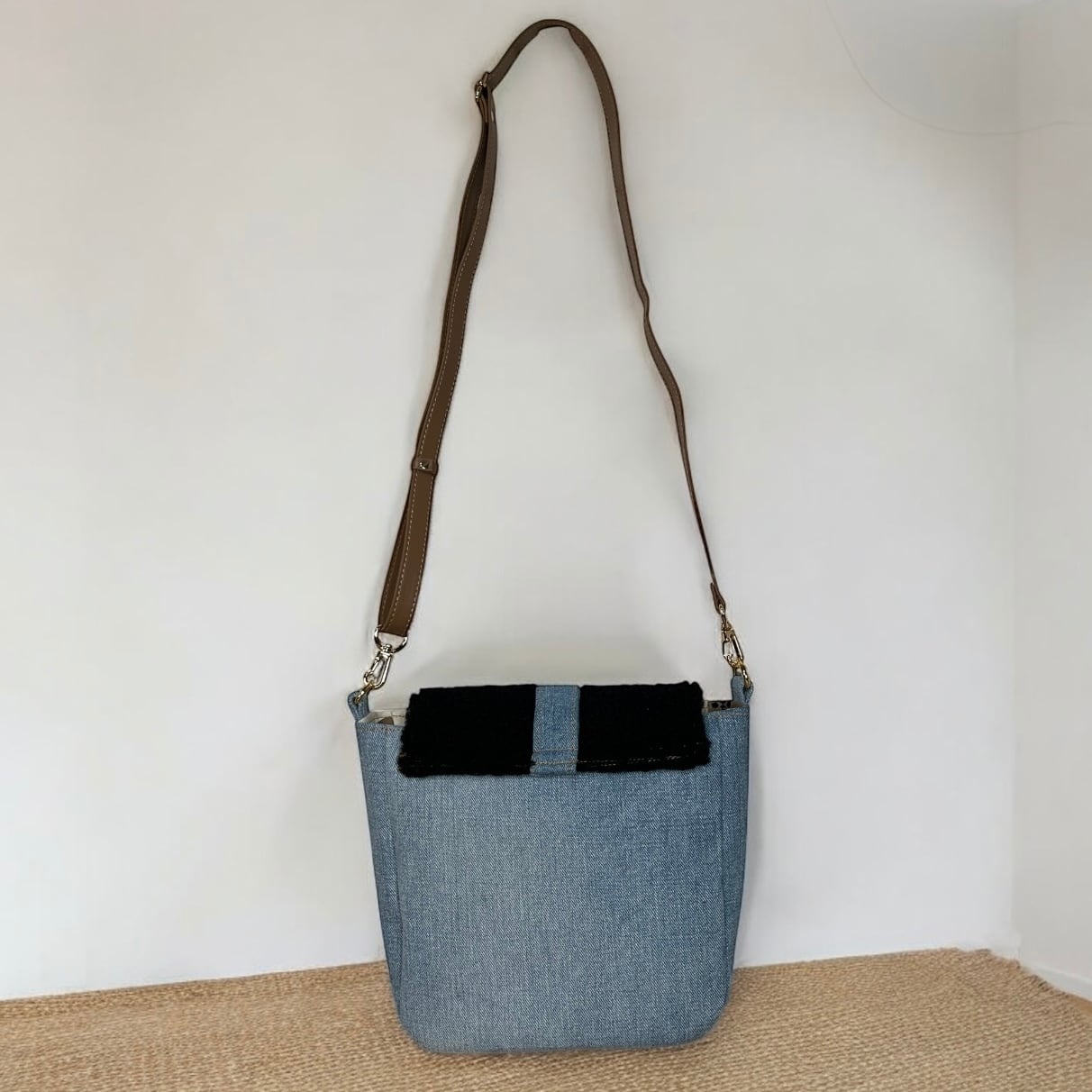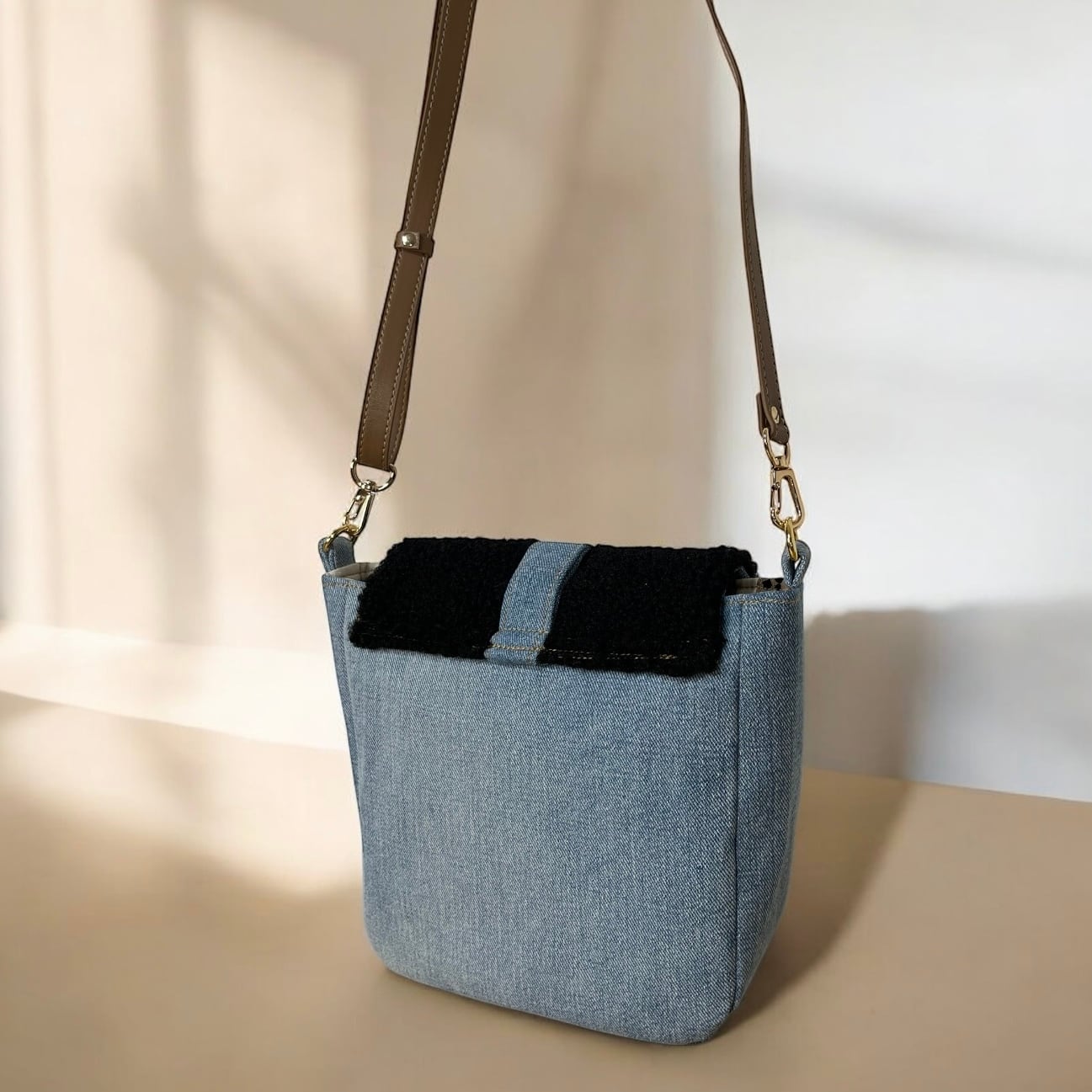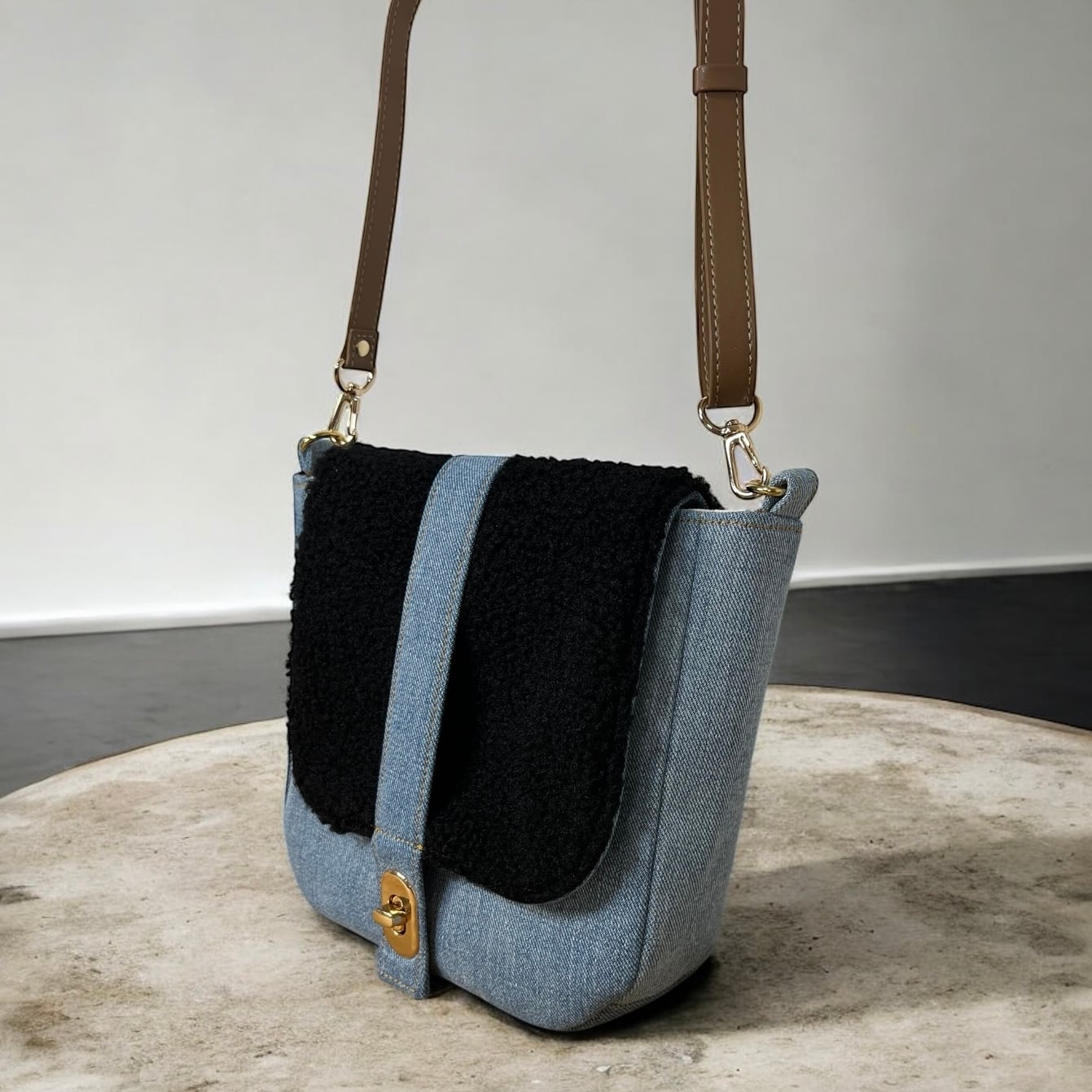 デニムともこもこ生地が可愛いショルダーバッグです♡