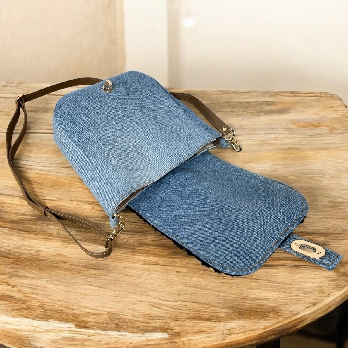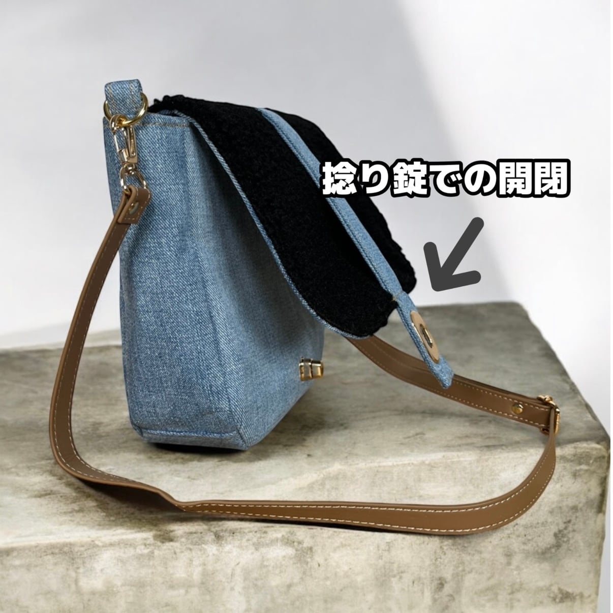 捻り錠付き★ボア×デニムのショルダーバッグ