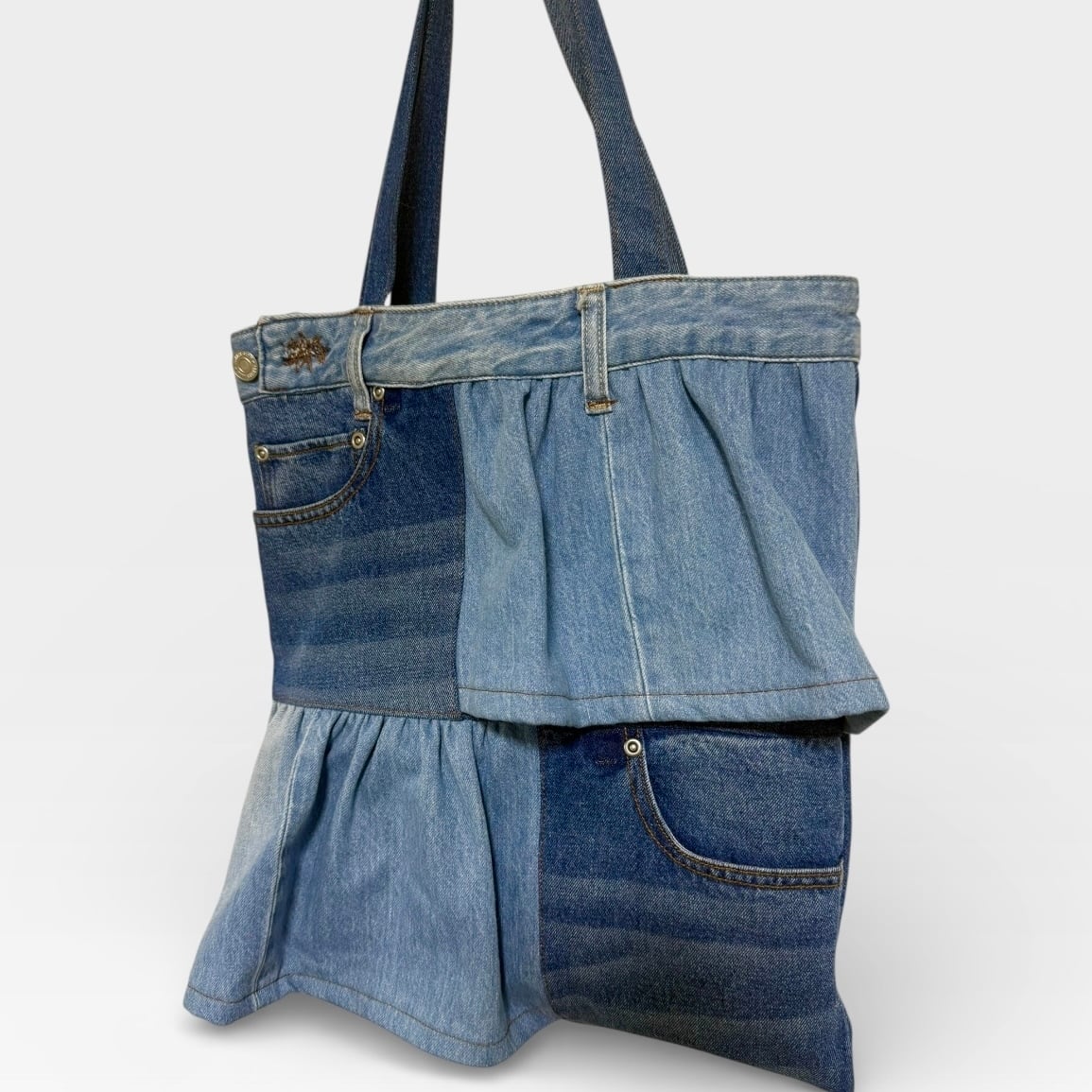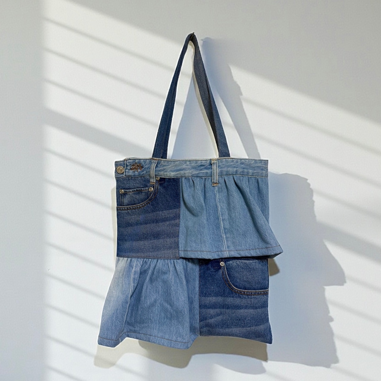 トートバッグ、かばん、オールシーズン、かわいい、デニム、大人っぽい、おしゃれ、リメイク、オリジナル、1点物、プレゼント、新生活、旅行バッグ、デニムトート、デニムトートバッグ、サブバッグ、ミニバッグ、ギフト