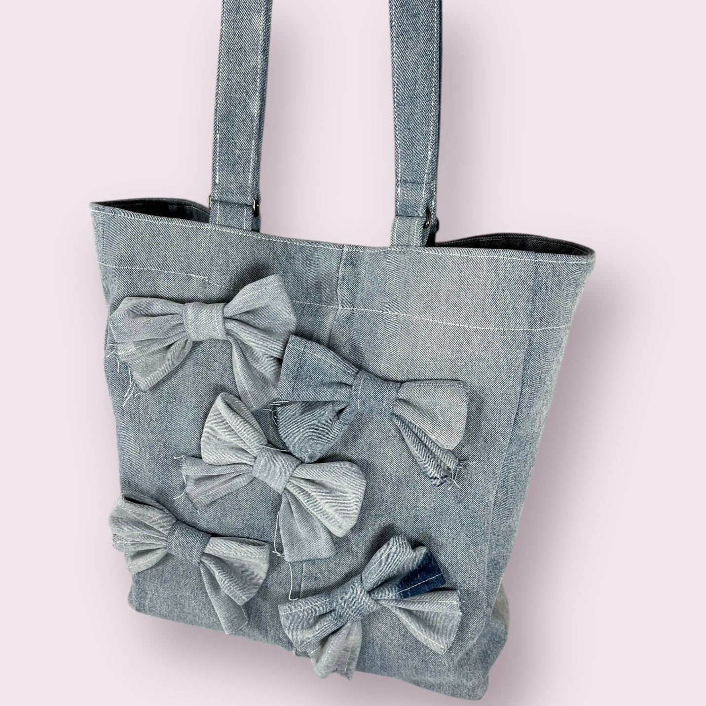 デニムのリボン付きトートバッグか他にはない可愛さ♡