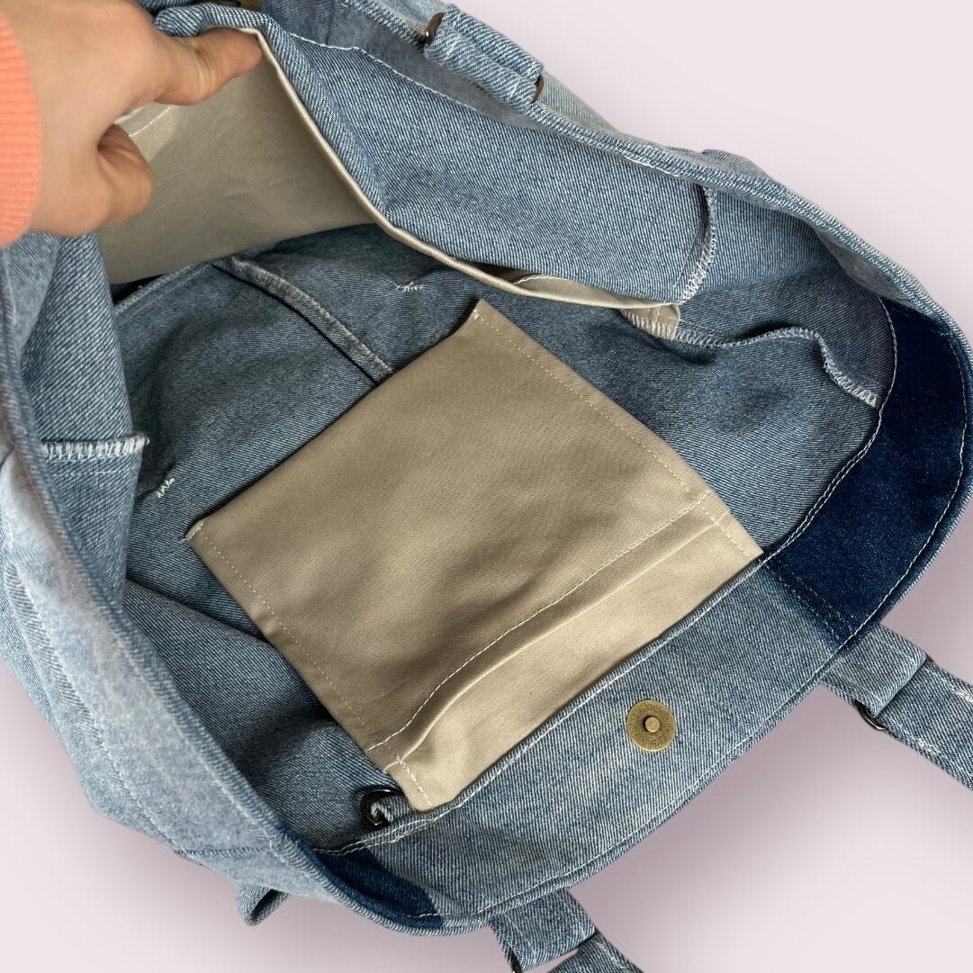 トートバッグ、かばん、オールシーズン、かわいい、デニム、大人っぽい、おしゃれ、フリンジ、リメイク、オリジナル、1点物、USED、パッチワーク、プレゼント、新生活、旅行バッグ、デニムトート、デニムトートバッグ、テッシュ、サブバッグ、ミニバッグ、パッチワーク、デニムパッチワーク、デニムパッチワークトート、プレゼント、ギフト、ショルダーバッグ